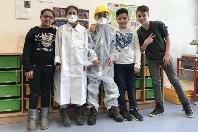 Was ist eigentlich Schutzkleidung und warum ist es so gefährlich, wenn die Kinder, die in den indischen Steinbrüchen arbeiten müssen, weder feste Schuhe noch Schutzbrillen oder Atemschutzmasken gegen den Staub haben? Diese Frage stellte sich der Philosophie-Kurs des 5. Schuljahres und zog die Schutzkleidung gleich mal an. Dabei stellten wir fest, dass Sicherheitsschuhe wirklich sehr stabil sind und wir wissen nun, wie eine Atemschutzmaske funktioniert.